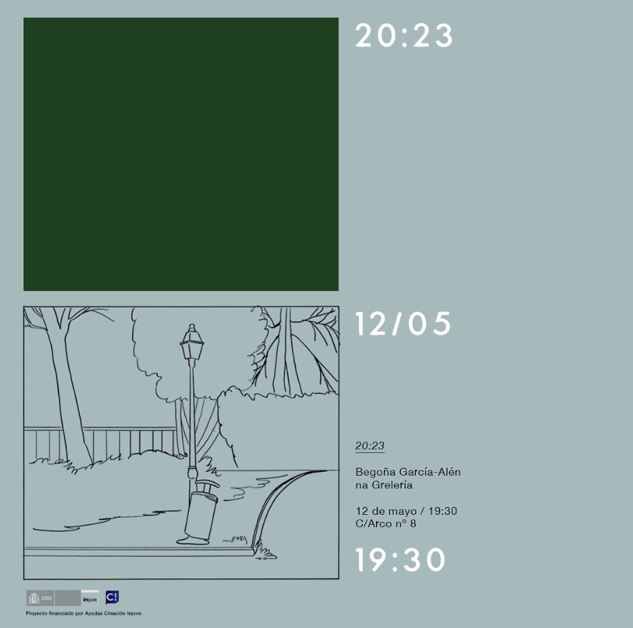 Julia Lago, fundadora da Grelería e comisaria desta exposición, indica que Begoña destaca no panorama da autoedición participando en fanzines de modo individual e colectivo. O proxecto “20:23” foi creado expresamente para esta exposición, e incluía a presentación do fanzine homónimo impreso en risografía. “20:23” é un exercicio creativo que consiste en partir dunha imaxe de serigrafía e facer un cómic a partir dela, sacando a idea a partir do técnico.