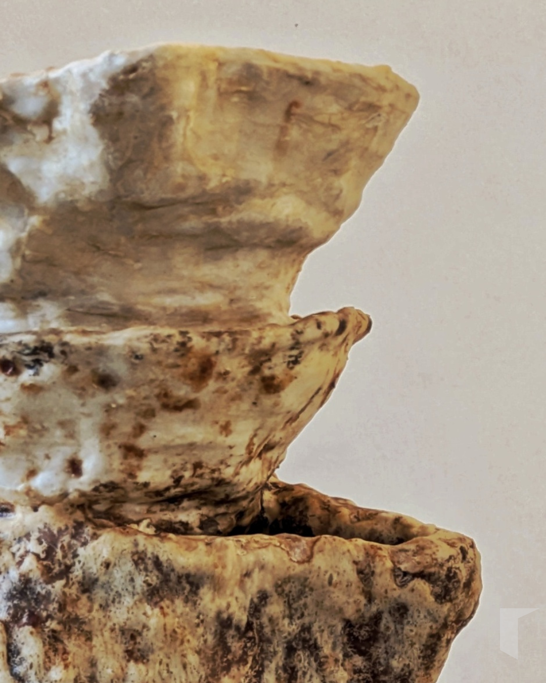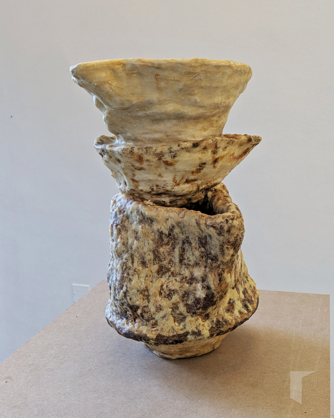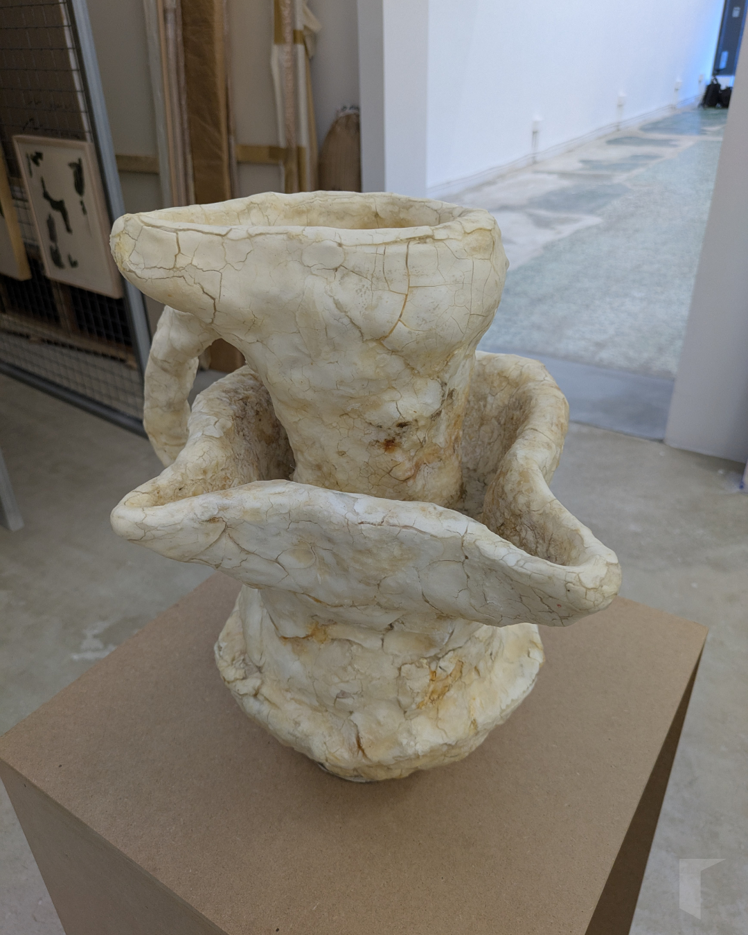 A primeira peza que atopamos ao entrar na Nordés é Xerro de Leite (triple apilado), unha escultura modelada a base de manteiga, queixo cebreiro, queixo philadelphia, xeso e resina. Este triple xerro é unha obra viva que leva desde 2022 evolucionando, sendo intervida polas bacterias que curan o queixo alleas á súa posición nun pedestal á entrada dunha galería. A escasos mentros, encontramos o Xerro de doble embocadura, composto únicamente por manteiga, xeso e resina e cun ton moito máis uniforme e branquecino que o anterior.