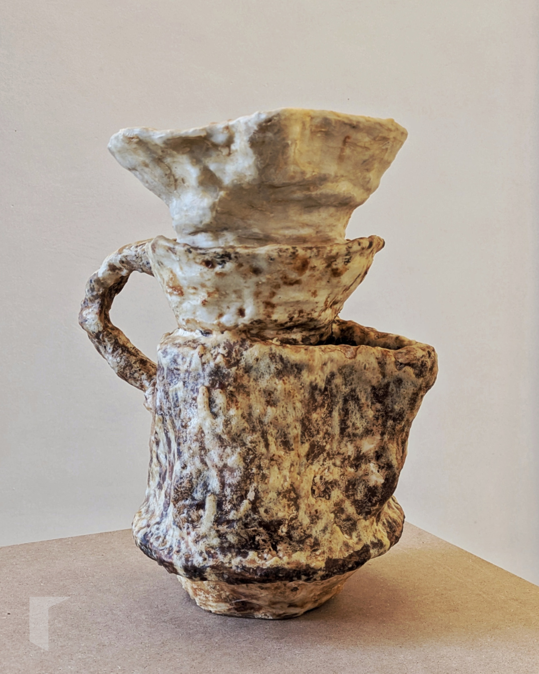 Ambos xerros comparten a rugosidade desta “oleiría” modelada en queixo e o absurdo de non poder cumplir coa función que se lles presupón. Ningún destes xerros pode ser empregado, non só polo material co que son realizados senón, principalmente, pola súa construcción. Os tres picos do primeiro fan imposible verter un líquido sen derramalo por todas partes, igual que a doble embocadura do segundo. Un xerro precisa un pico e un asa, ás veces as cousas son así de simples. Ser o doble ou o triple non significa ser mellor, parecendo este o “menos é máis” menos discutible da historia.