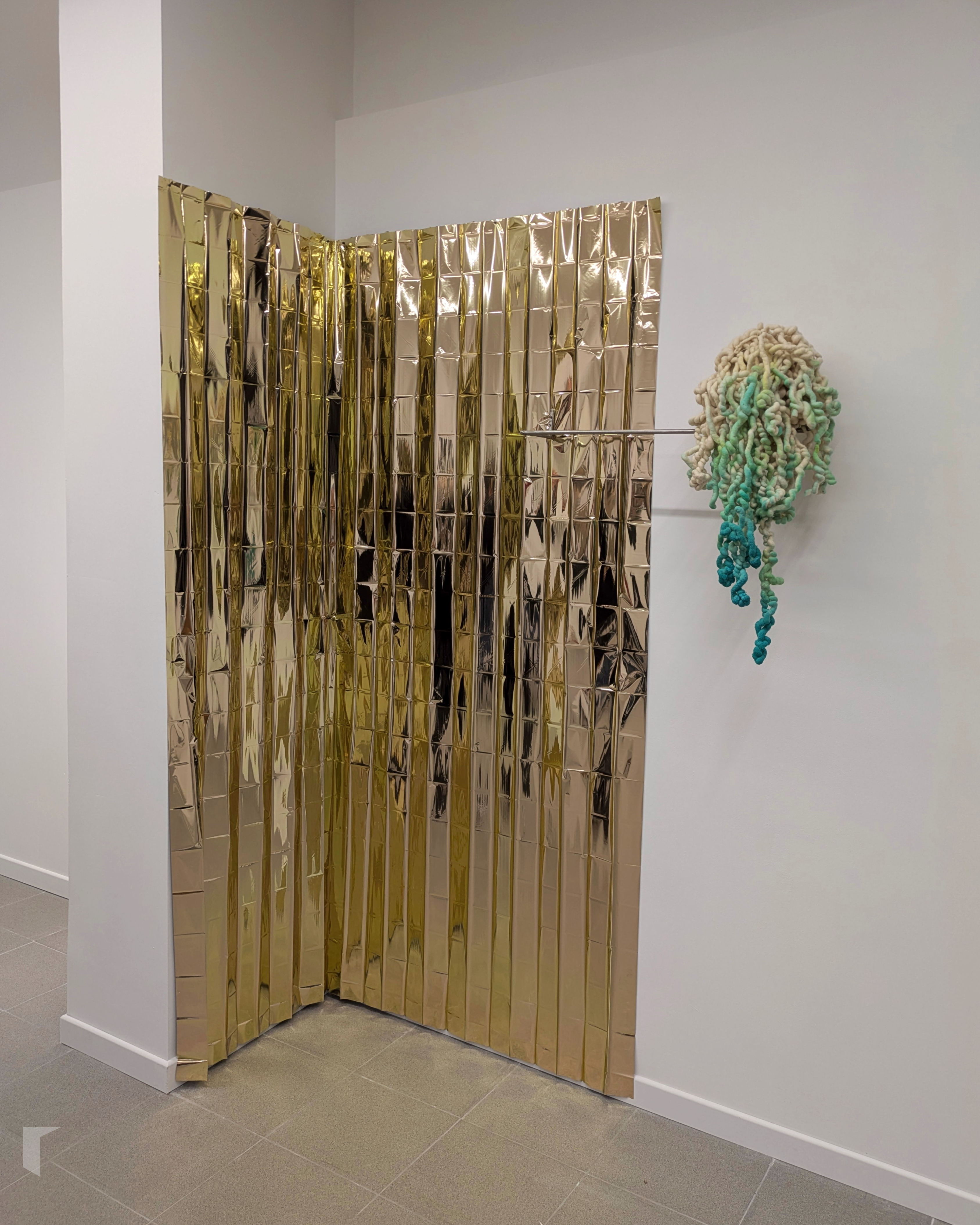 Tras a columna que agocha Paisaxe “freelance” desprégase Natureza jareada, unha peza que non pasa desapercibida nin para visitantes nin para transeúntes. Unha manta térmica dourada acompañada de aceiro e la virxe inspirada na jarea -a técnica de secado ao sol do pescado- denuncia o que facemos coa natureza, como especulamos con ela, como a “exprememos ata sacarlle todo sen o máis mínimo interese polo que estamos a facer.” Non é ouro todo o que reluce, especialmente neste caso.