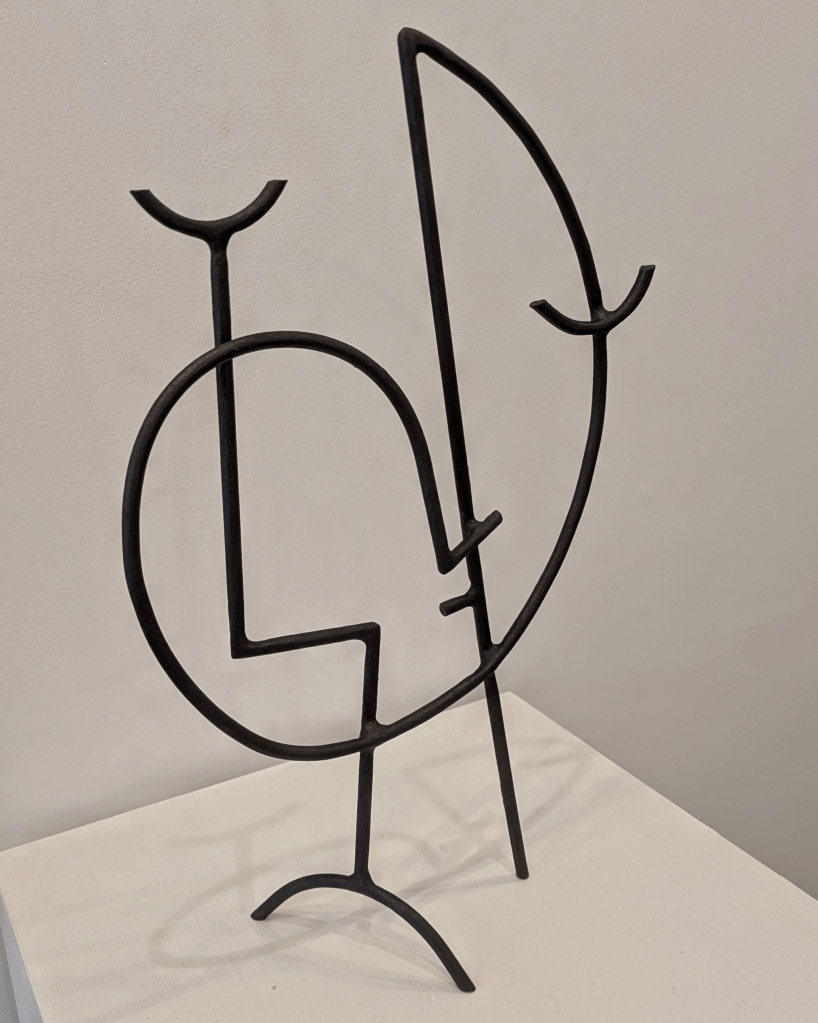 No interior, os ferros de Cabezas descansan sobre peanas deixando que as sombras dancen ao seu redor. As esculturas soñan, durmen, voan, manteñen o equilibrio e sosteñen a ollada. O negro convive coa cor, que o artista aplica ás obras con pinceladas pacientes e delicadas nas que disfruta do contraste entre a robustez do ferro e a liquidez da pintura, entre as chispas do lume e as pingas do esmalte. O resultado é unha sensación constante de xogo harmonioso, como o piar dos paxariños celebrando a primaveira, como a banda sonora da alegría dun patio escolar na hora do recreo.